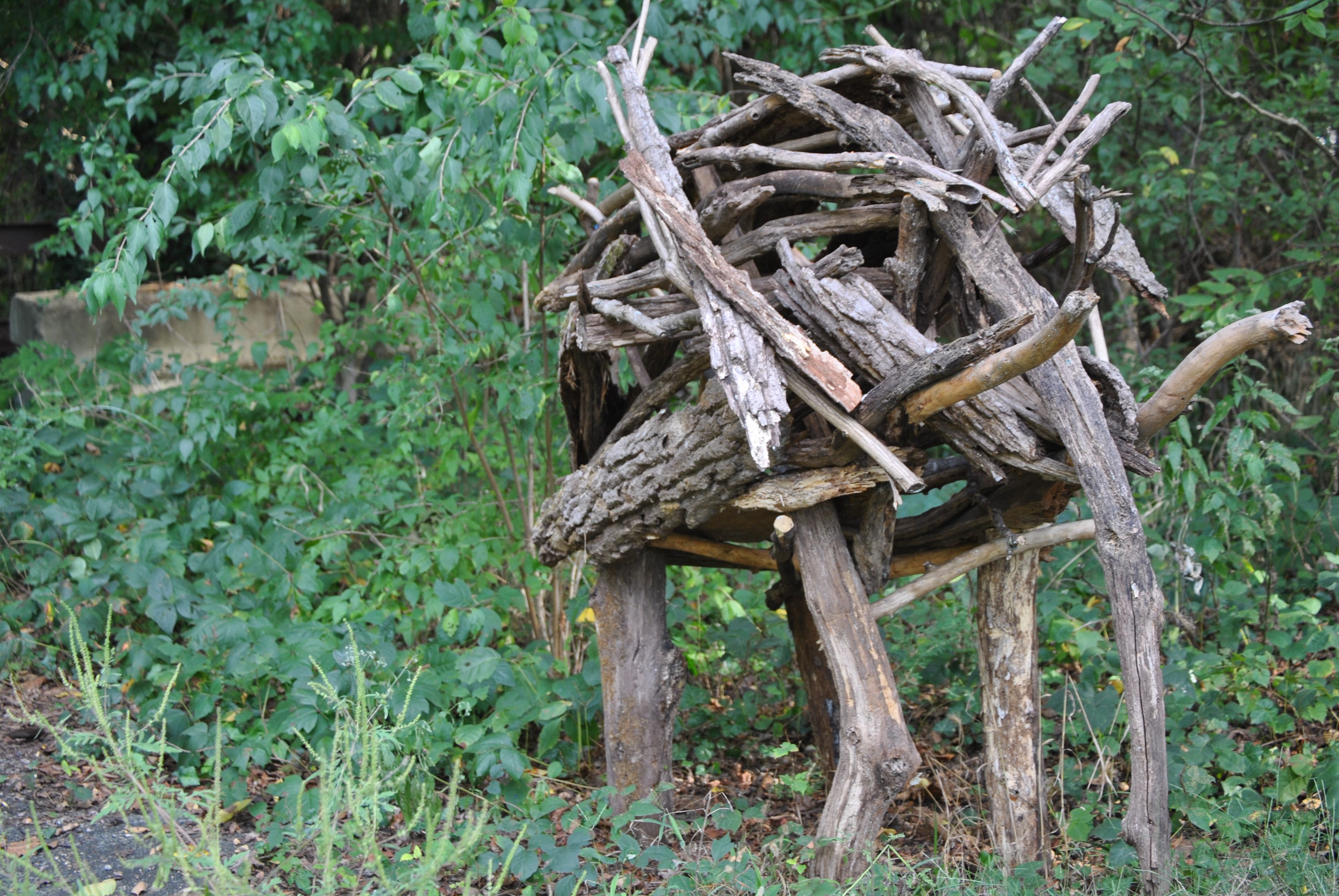 The next morning waking up was a tad rough, but knowing back to back runs would help with my race in November, I pushed on.  I also wanted to test out how I would carry my water, whether in camelbak device with water on my back or a hand carried bottle.  I decided to use a hand-carried water bottle with the main pocket filled with peanuts and a Gu to represent race day.  The goal for the morning was to complete two North Bank & Buttermilk loops estimating 12-14 miles after completion.  I knew completing the milage would be helpful, but what would count the most would be time of feet. So completing two loops was a must, no matter how slow I went.  After 10 minutes my body felt as if I had already completed one loop and I was already starting to regret my plans.  My left arm was already starting to feel uncomfortable with the water bottle and my legs felt like they were being weighed down.  As I was slowly progressing along the trail all I could think about was “just wait until you come back to this point you would have already completed one loop,” but getting to the second loop was taking forever.  I was able to drink a lot of water to replenish what I lost the night before and keep my bottle filled with water fountains spread around the loops. The first loop I was able to run the whole way, finishing 15 minutes slower than I typically do. I stopped at my car to ditch my shirt and successfully fought the urge to jump in behind the wheel and take off.  This loop was of course more painful than the first and I resorted to hiking a lot of the uphills and random spots along the trail when needed. Nothing else really exciting happened the rest of the trail run, I had to dig deep to finish.  It also helped that the best way back to my car was to complete the loop. Upon finishing I laid out in some shade under a tree staring at an amazing stick Elephant, randomly created near the trailhead. I may have even taken a nap.